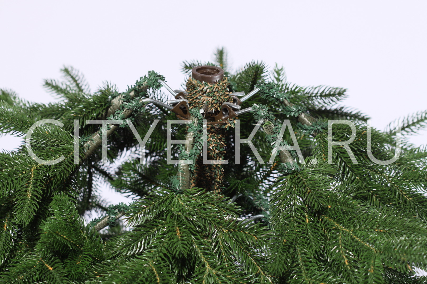 Каркас интерьерных искусственных ёлок - ствольная конструкция. Ветки закреплены на стволе. Крепление веток к стволу шарнирное.