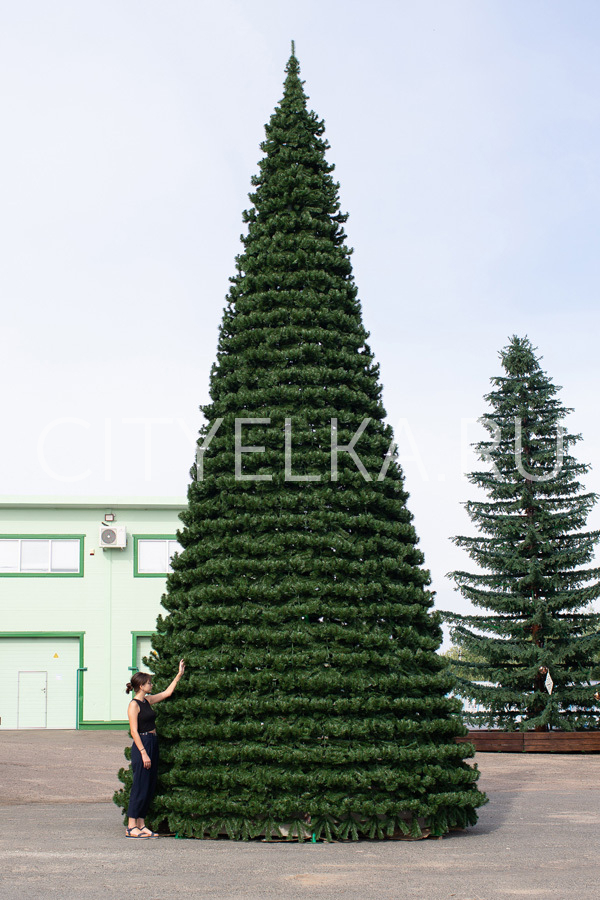 - Ветки начинаются от земли, основание пригружают бетонными блоками. Рекомендуется ставить ёлку на подиум или использовать ограждение.