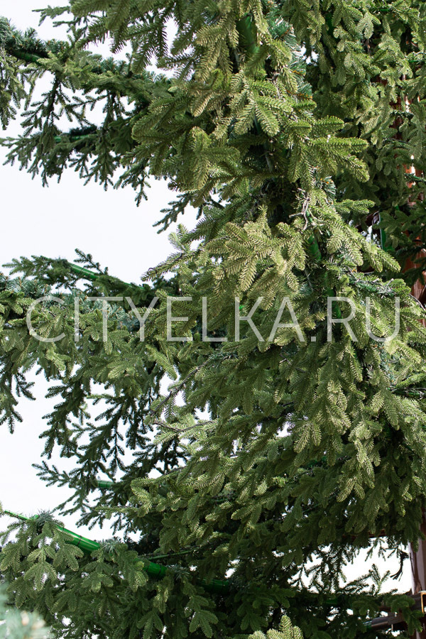 - Каркас сборно-разборный, ветки крепятся непосредственно к стволу. При высоте ёлки от 8 метров каркас усиливается, чтобы избежать прогибания веток.