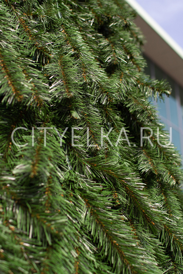 - Ветки начинаются от земли, основание пригружают бетонными блоками. Рекомендуется ставить ёлку на подиум или использовать ограждение.