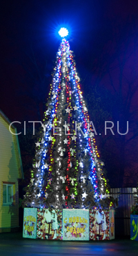 Гирлянда вешается сверху вниз так, чтобы по нижней окружности ёлки расстояние между гирляндами было 35 - 50 см. В зависимости от высоты елки используются гирлянды 12, 18 метров или 10, 15 метров.
