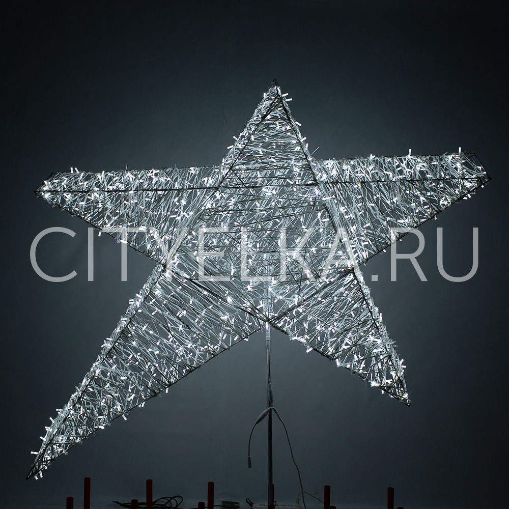 Усовершенствованные макушки для уличных елок Стекло-нить изготавливаются из металлического каркаса, обрамленного светящимся шнуром дюралайт с внутренним заполнением гирляндой того же цвета.
