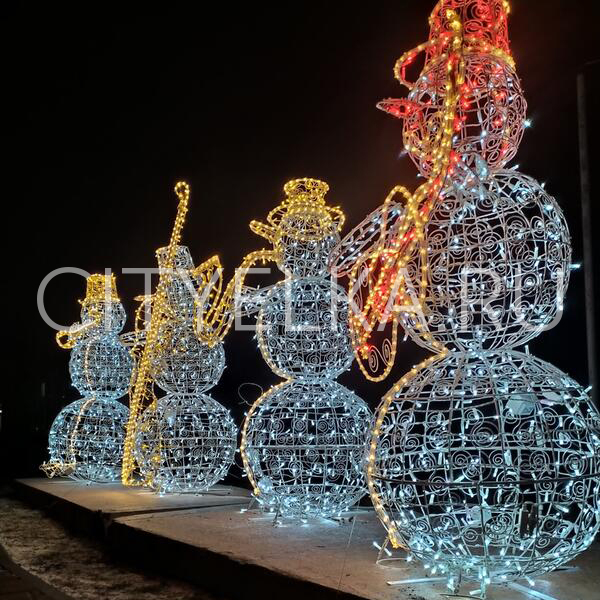 Изготовлены из металла с ажурными элементами, покрыты антикоррозийным полимерным покрытием чисто белого цвета. Декорированы светодиодными уличными гирляндами с высокой защитой от влаги и пыли.